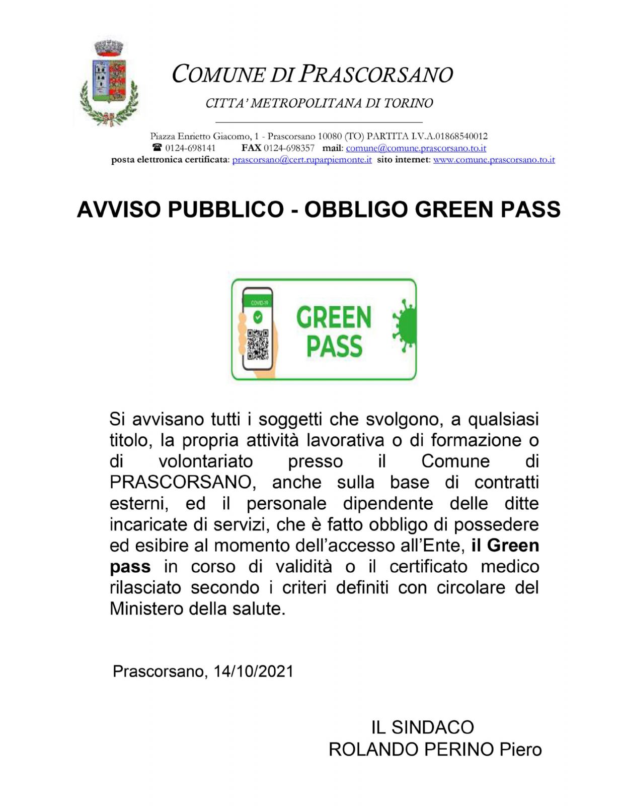 OBBLIGO DI GREEN PASS DAL 15.10.2021