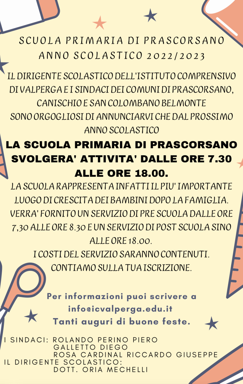 PRE-POST SCUOLA DI PRASCORSANO A.S. 2022/2023