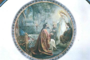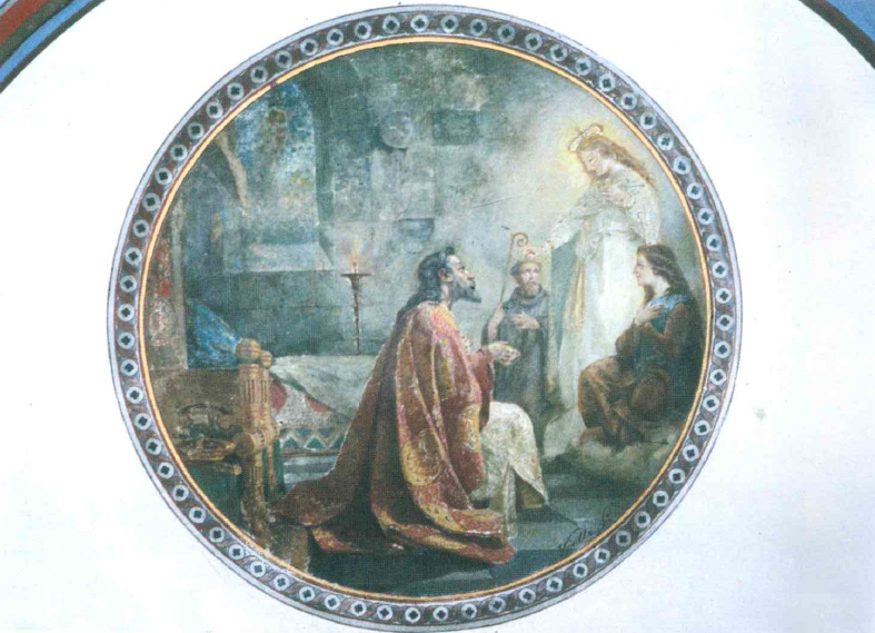 Lungo la scala d’accesso alla galleria degli ex-voto ed al museo del santuario, allestiti sulla navata destra della chiesa, sono ancora visibili avanzi di affreschi quattrocenteschi dell’antica chiesa delle monache.