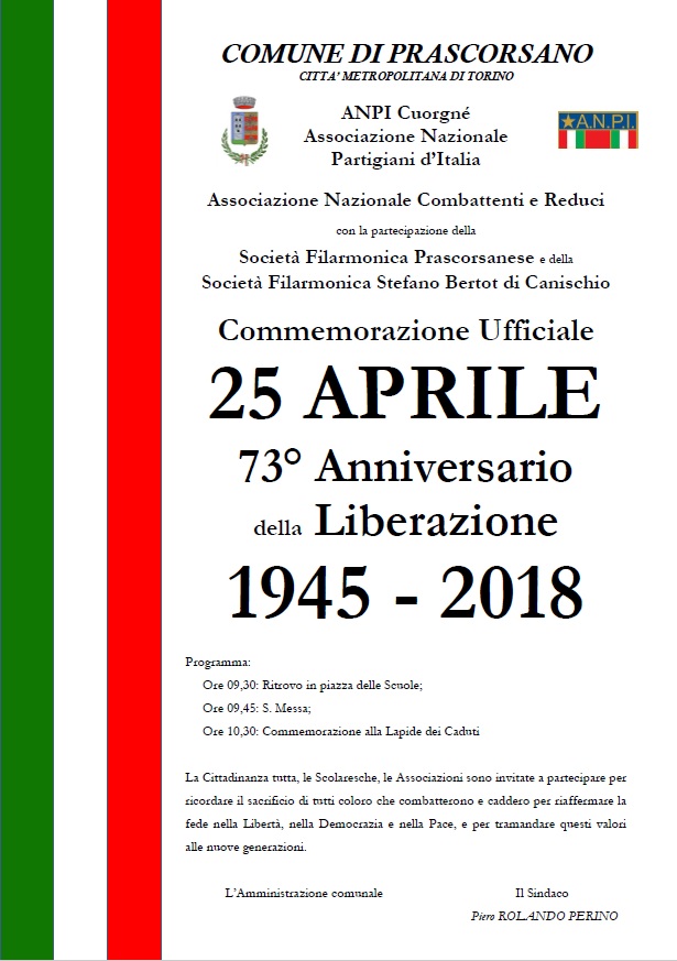 La Cittadinanza tutta, le Scolaresche, le Associazioni sono invitate a partecipare per ricordare il sacrificio di tutti coloro che combatterono e caddero per riaffermare la fede nella Libertà, nella Democrazia e nella Pace, e per tramandare questi valori alle nuove generazioni.