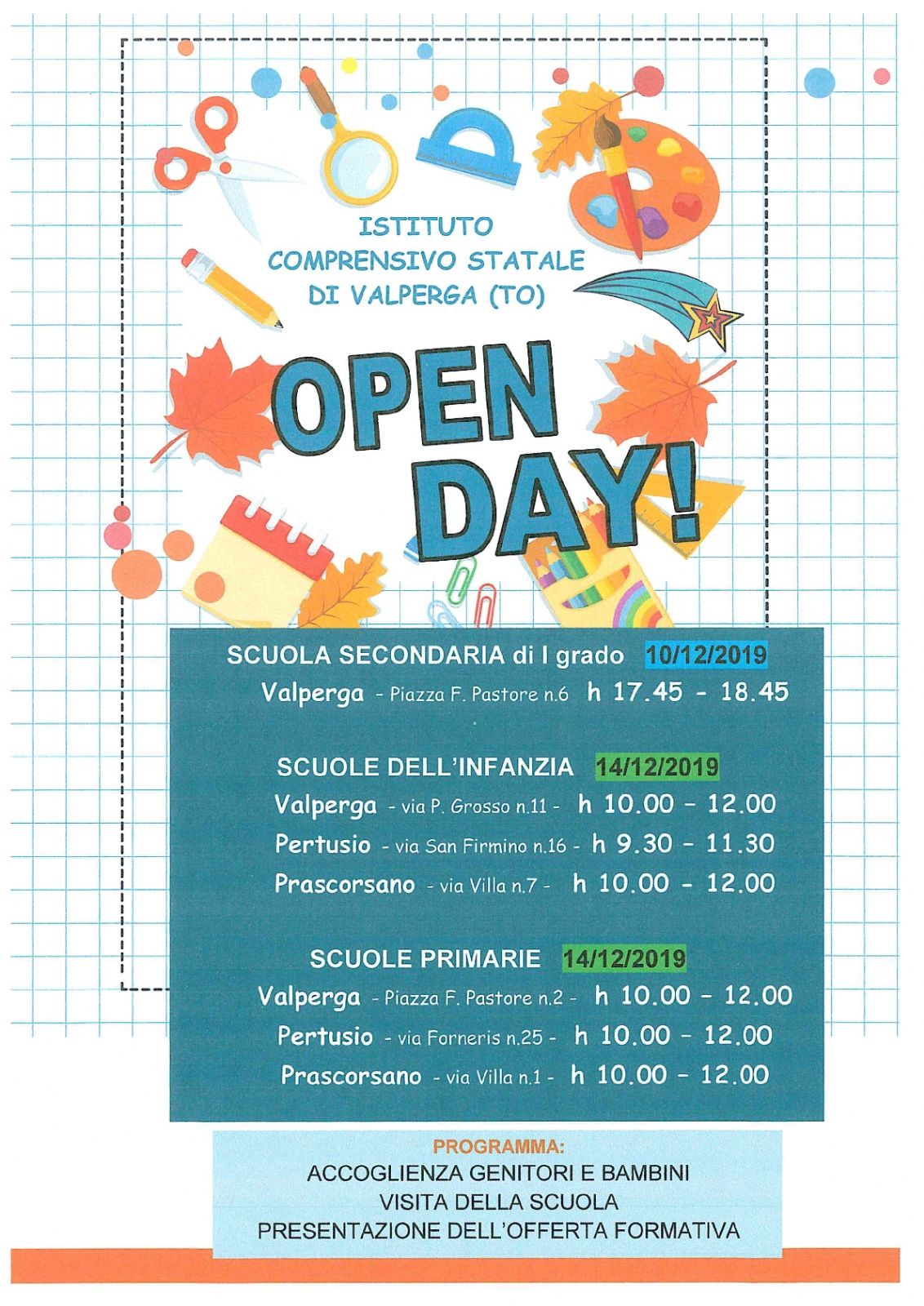 Valperga: Scuola Primaria - Ore 10.00 - 12.00