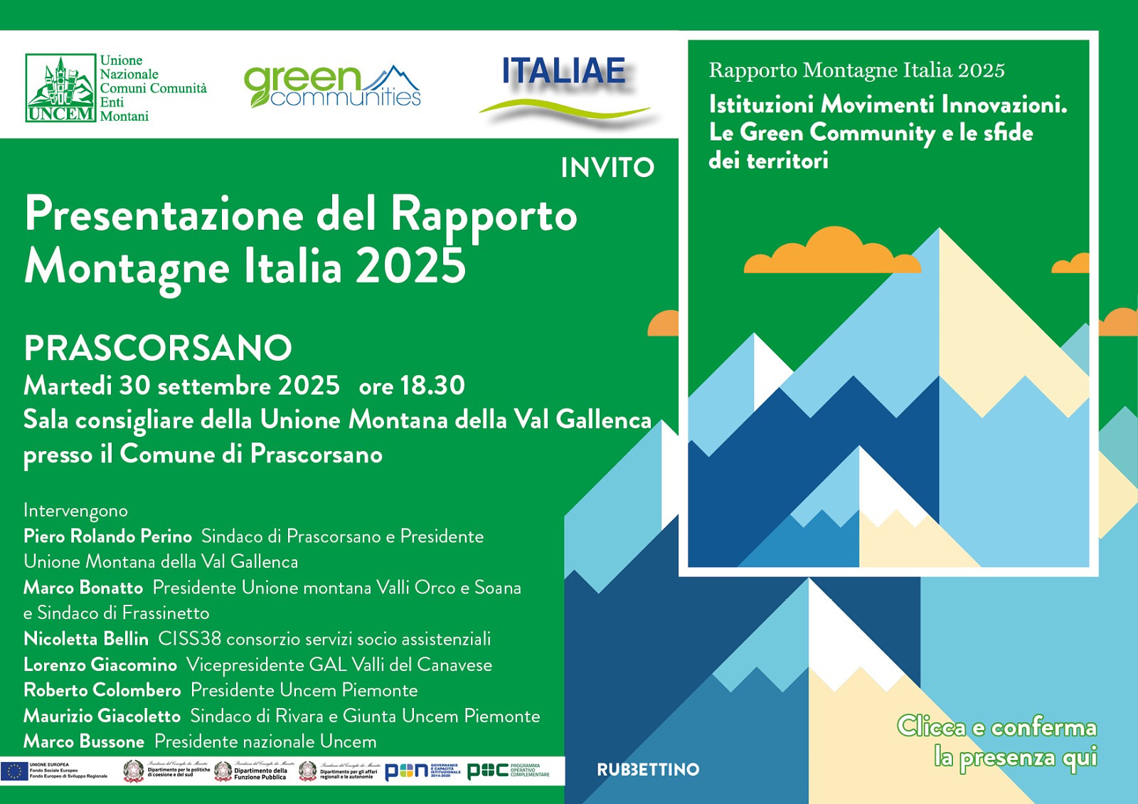 Appuntamento a martedì 30 settembre ore 18.30 in Sala Consigliare, per parlare insieme della montagna e del suo ruolo!