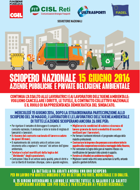 SCIOPERO NAZIONALE AZIENDE PUBBLICHE E PRIVATE DELL'IGIENE AMBIENTALE