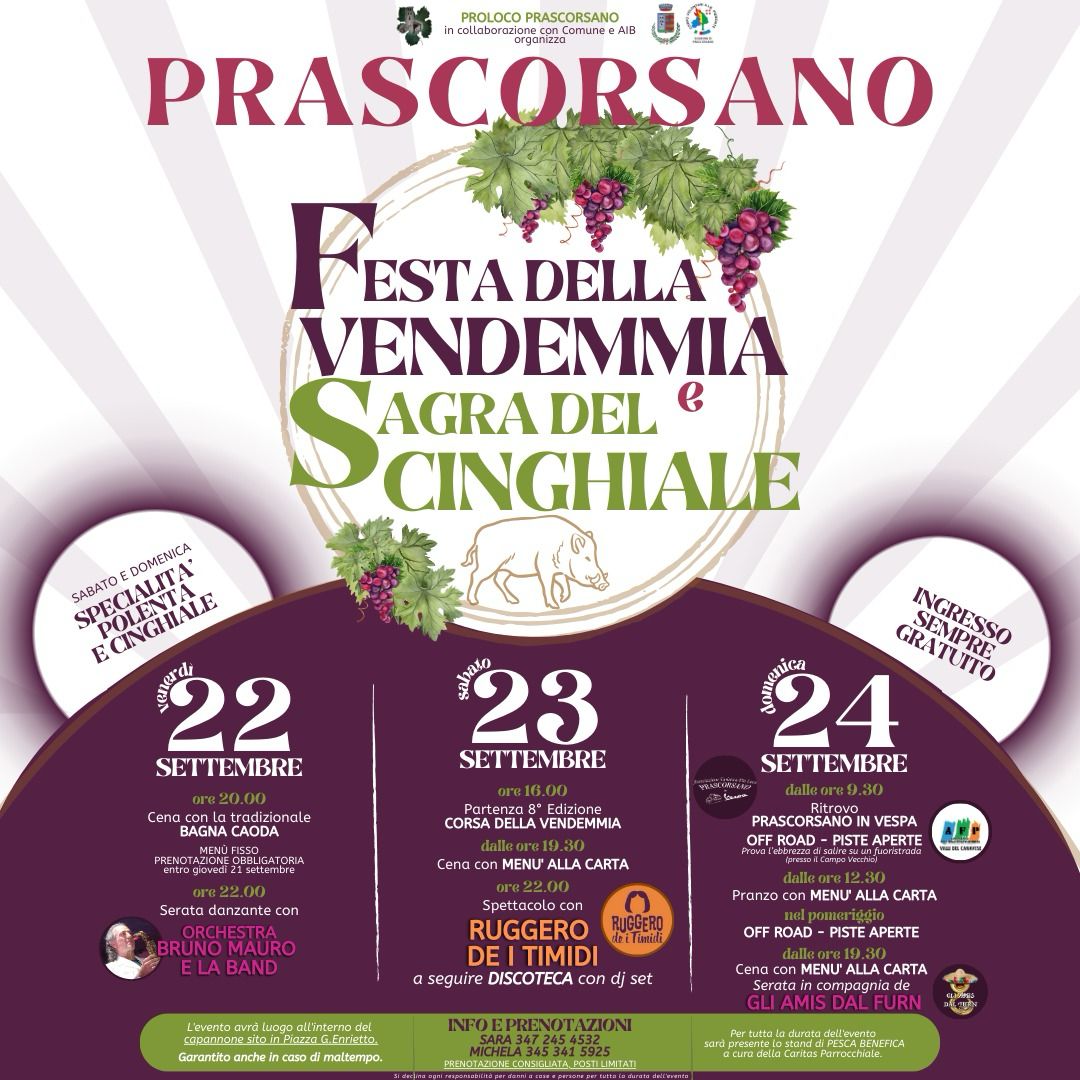 venerdi' 22, sabato 23 e domenica 24 settembre 2023 in piazza enrietto si svolgera' la festa della vendemmia e sagra del cinghiale